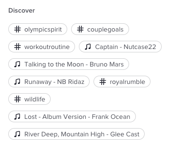 The discover tool: located on the “for you page” (FYP) page. If you scroll down, it will be on the left hand side of the page. It provides a ton of hashtags and other trending topics, including songs and searches. From there, you’ll be able to get up-to-date information and explore any key words that you want to take advantage of.